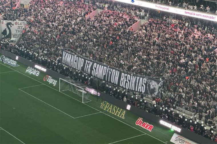 Öte yandan kale arkasında da “Namağlup tek şampiyon Beşiktaş” pankartı açıldığı görüldü.