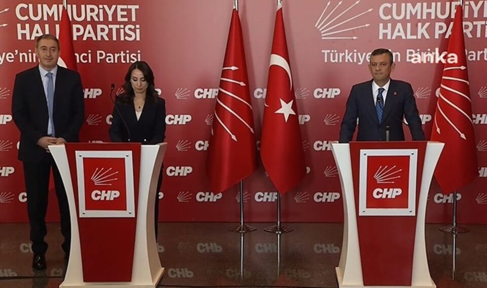 DEM Parti İmralı Heyeti’nde yer alan Eş Genel Başkanlar Tülay Hatimoğulları ve Tuncer Bakırhan, Özgür Özel ile CHP Genel Merkezi’nde bir araya geldi.