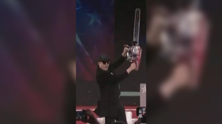 Konferansa katılan Arjantin Devlet Başkanı Milei tarafından kendisine hediye edilen altından yapılmış büyük bir elektrikli testere ile sahnede poz veren Musk, “Bu testere bürokrasi için” diye bağırdı.