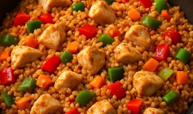 Bulgur pilavı Türk mutfağının vazgeçilmezi, ama bu kez klasik hali yerine içi bol malzemeli ve tek başına bir öğün olabilecek şekilde geliyor. Tavuk, sebze ve baharatlarla zenginleştirilmiş bu tarif hem hızlı hazırlanıyor hem de oldukça doyurucu. Yanına sadece bir kase yoğurtla harika bir akşam yemeği oluyor!