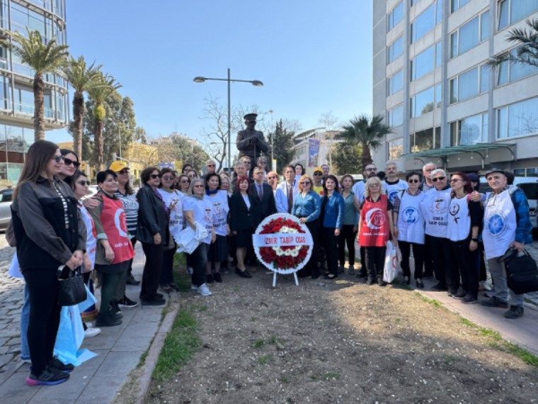 Basın açıklamasının ardından İzmir Tabip Odası Yönetim Kurulu Başkanı Prof. Dr. Mehmet Ceyhun Özyurt, yönetim kurulu üyeleri ile sağlık çalışanları Cumhuriyet Meydanı’ndaki Atatürk anıtına ve İzmir Ticaret Odası binası önünde bulunan İstanbul’un işgaline karşı 14 Mart 1919’da başlatılan “Tıbbiyeli Hareketi”nin önderi olarak bilinen Tabip Yarbay Hikmet Boran’ın anıtına çelenk bıraktı.